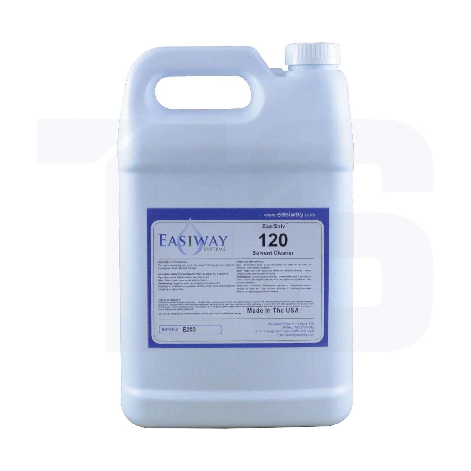 EasiSolv™ 120 Solvent Cleaner is a quick-drying cleaner formulated to effectively dissolve and remove printing inks from screen printing mesh, squeegees, flood bars, presses, pad printing tools, rotary screens, and more. The combination of components is designed to solubilize and remove virtually every type of ink and minimize any remaining stains.