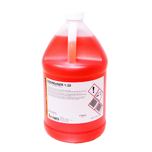 DEGREASER 1:20 Concentrate is an economical degreaser with strong foaming action. It is free from Chlorine and phosphates, and is biodegradable. One quart of DEGREASER 1:20 concentrate makes 5 gallons of working degreaser solution.