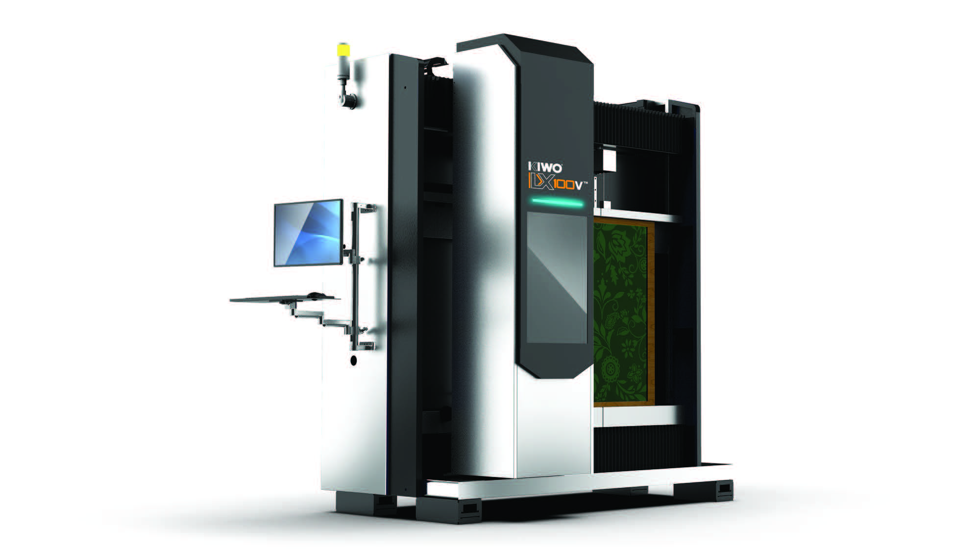 The Kwo LX 100V computer-to-screen laser direct imaging system utilizes Texas Instruments’ DMD (Digital Micro-Mirror Device) digital imaging technology to produce clear, sharp, and accurate images directly on the screen through a high-output laser light source. Superior image quality is standard with 1270 DPI optical resolution (option 2540 DPI) and line widths as fine as 50 microns. With the growing demand for versatile imaging and exposing systems and the rise of unreliable equipment flooding the market, the impressive features of the Kiwo LX 100V have the industry buzzing. Its sleek, vertical design maximizes efficiency while delivering powerful performance, game-changing output, and razor-sharp precision imaging for a wide range of screen sizes, with a maximum outside frame dimension of 39″x39″.