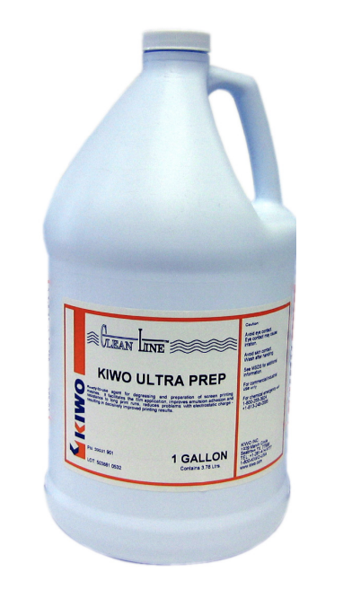 ULTRA PREP is the latest technology in mesh preparation to increase process reliability. ULTRA PREP improves the wetting ability of the mesh and adherence of emulsion–improving the emulsion’s durability. ULTRA PREP treated mesh also improves the flow of both emulsion and ink through the screen, resulting in better coating results and finer details during printing. When used on newly meshed screens, it also reduces the appearance of ghost haze images.